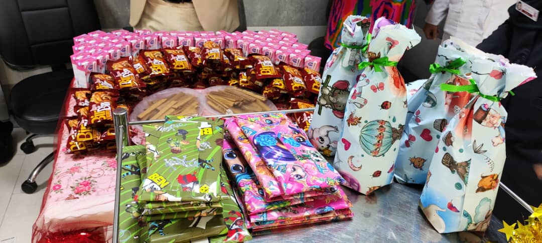 در ادامه نیز به کودکان بستری در بخش ، هدایایی تقدیم کردند و از این نوگلان دلجویی نمودند.