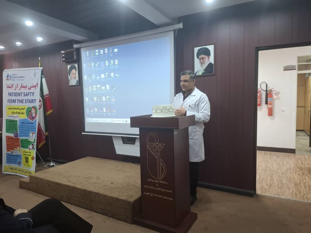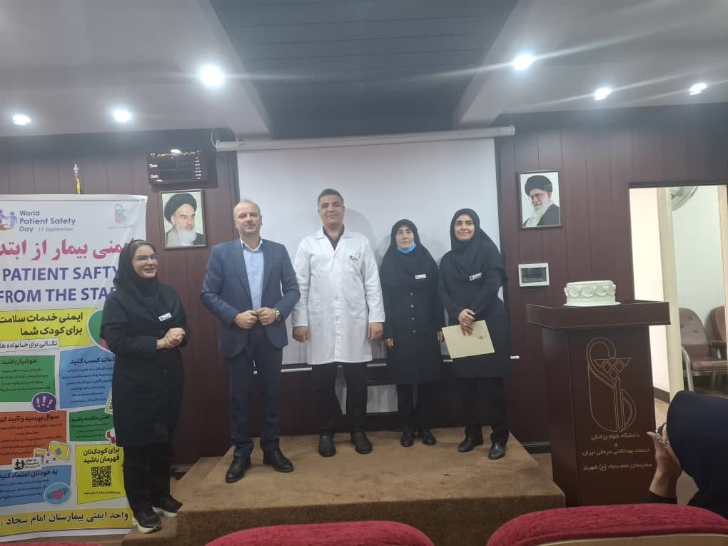 به مناسبت روز جهانی ایمنی بیمار با شعار ایمنی بیمار از ابتدا، مراقبت ایمن برای هر نوزاد و کودک، در تاریخ 26 شهریور ماه 1404 با حضور آقای رضا پورسمائی مدیر بیمارستان، آقای باقری مدیرپرستاری، خانم عسگری سوپروایزر کنترل عفونت و مسئول ایمنی بیمار و سایر همکاران محترم درمان برگزار شد.